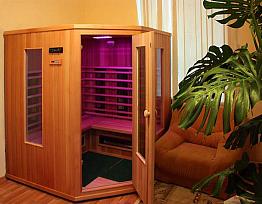 Внутри сауны используется светодиодное освещение. Цвет можно изменить на красный, зеленый, синий и градиент.