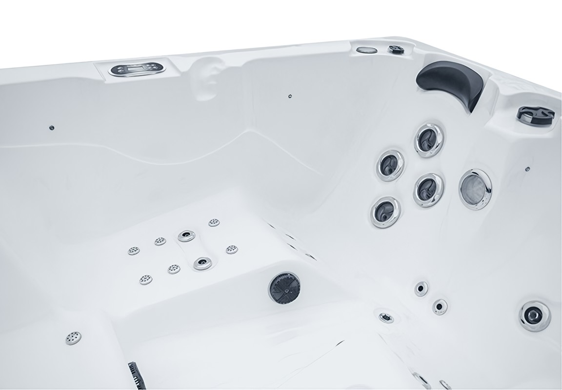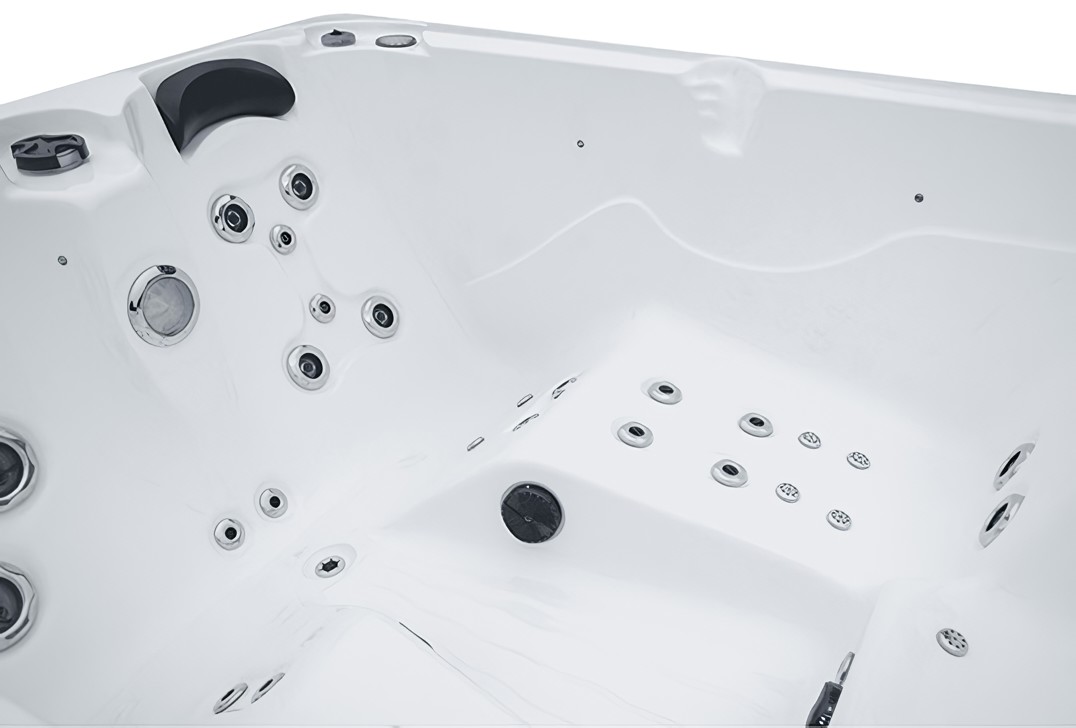 Для изделия таких размеров, в гидромассажном СПА-бассейне Ловиа Спа ZR6009 установлено довольно много форсунок - 30 штуки. Через них вода и воздух направленно воздействуют на тело, производя желаемый гидромассажный эффект. Каждый пользователь может индивидуально регулировать силу потока.